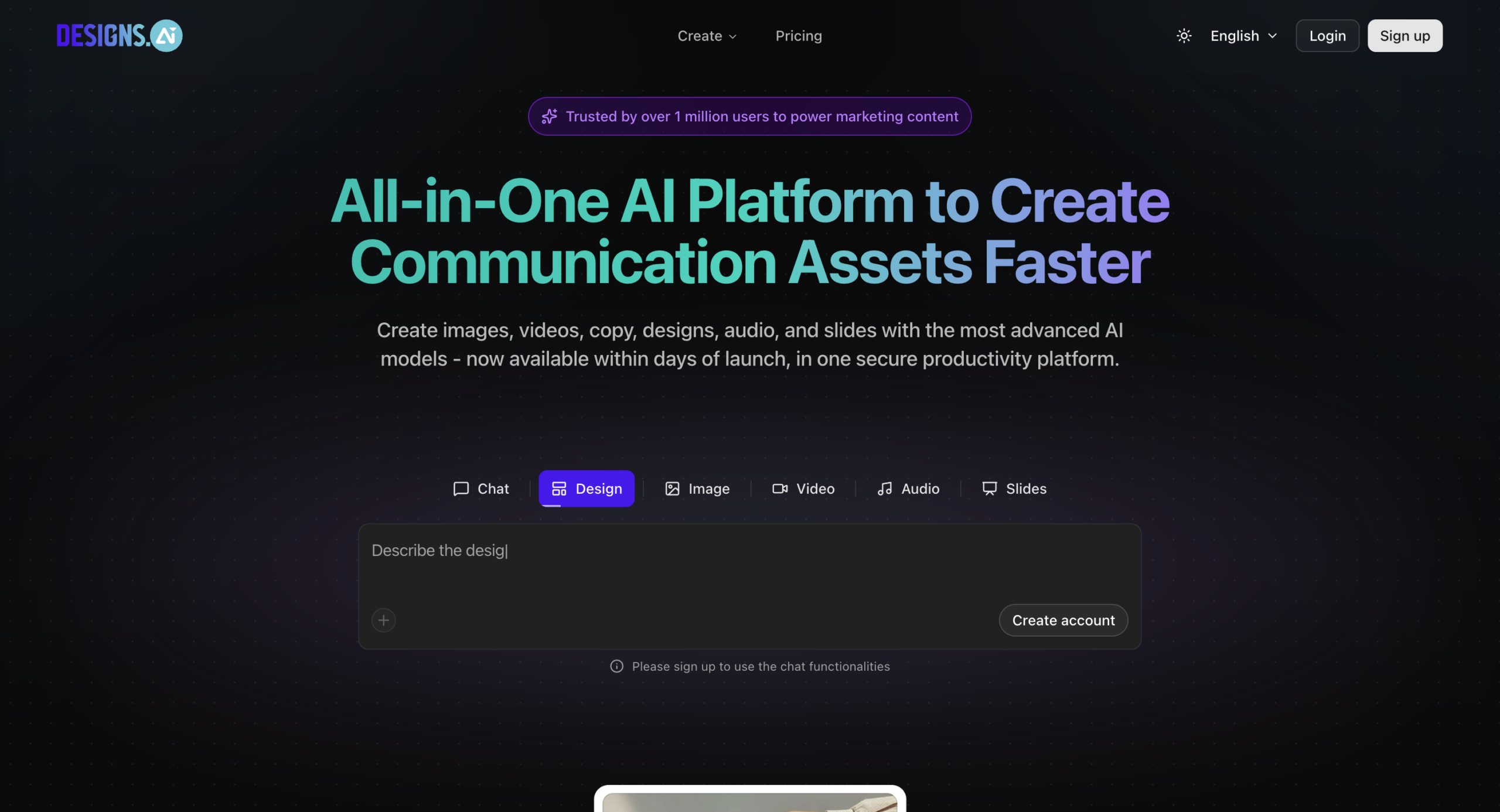 Designs.ai focuses on creative AI tools like: